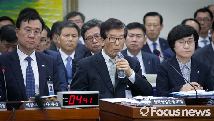 (서울=포커스뉴스) 30일 오전 서울 여의도 국회에서 열린 정무위원회 전체회의에 참석한 이동걸 한국산업은행 회장이 물을 마시고 있다.