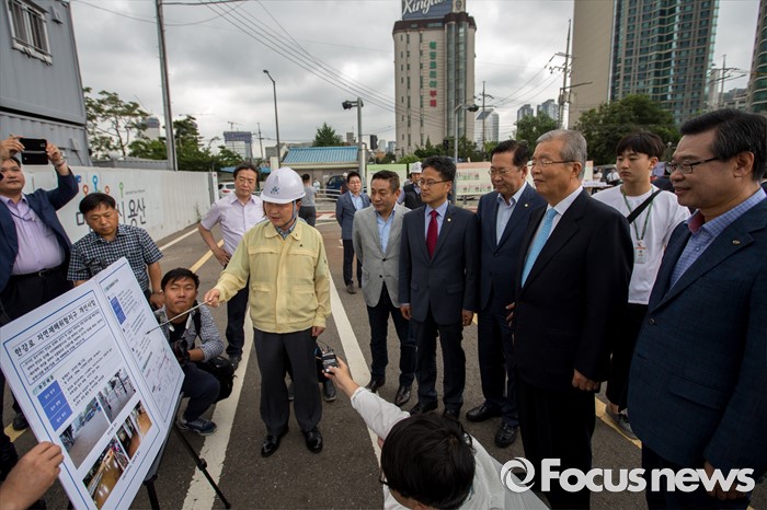 (서울=포커스뉴스) 김종인(오른쪽 두 번째) 더불어민주당 비상대책위 대표가 30일 오전 서울 용산구 한강로 빗물펌프장을 방문해 관계자에게 현장 현황을 전달 받고 있다.