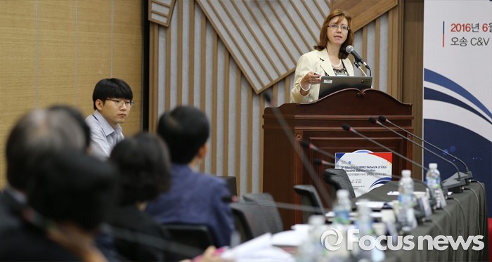 (청주=포커스뉴스) 30일 오전 충북 청주 오송 C&V 센터에서 열린 제3차 바이오의약품분야 WHO협력센터 네트워크 회의에서 이바나 네조빅(WHO Dr. Ivana Knezevic) WHO본부 전문가가 WHO의 나아갈 방향이란 주제로 기조연설을 하고 있다.