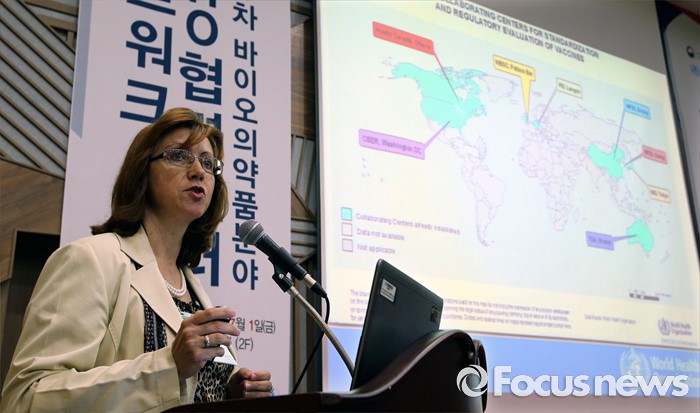(청주=포커스뉴스) 30일 오전 충북 청주 오송 C&V 센터에서 열린 제3차 바이오의약품분야 WHO협력센터 네트워크 회의에서 이바나 네조빅(WHO Dr. Ivana Knezevic) WHO본부 전문가가 WHO의 나아갈 방향이란 주제로 기조연설을 하고 있다.