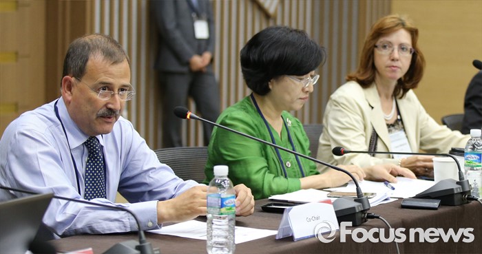 (청주=포커스뉴스) 30일 오전 충북 청주 오송 C&V 센터에서 열린 제3차 바이오의약품분야 WHO협력센터 네트워크 회의에서 이안 피버 영국 국립생물의약품 표준화연구소 세균부 부장이 발언하고 있다.