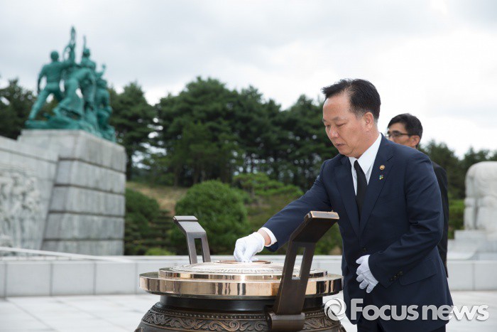 (대전=포커스뉴스) 30일 오전 김동극 신임 인사혁신처장이 국립대전현충원을 방문하여 순국선열과 호국영령을 위한 분향을 하고 있다.<사진제공=인사혁신처>