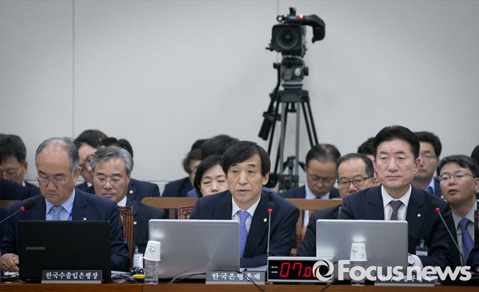 (서울=포커스뉴스) 30일 오전 서울 여의도 국회에서 열린 기획재정위원회 전체회의에 참석한 이주열(가운데) 한국은행 총재가 의원들의 질의에 답하고 있다.