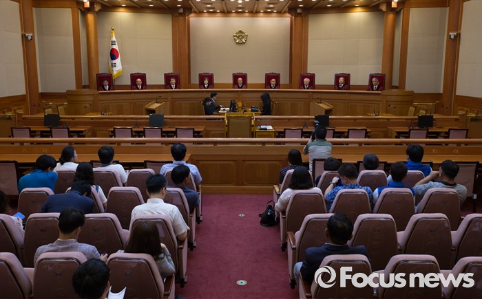 (서울=포커스뉴스) 30일 오후 서울 종로구 헌법재판소 대심판정에서 박한철 헌법재판소장이 '언론인 선거운동 금지' 공직선거법 제1항 제5호 위헌법률심판 사건 선고를 위해 착석해 있다.