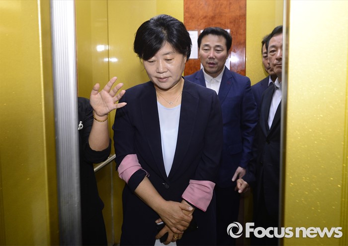 (서울=포커스뉴스) 가족채용 논란에 휩싸인 서영교 더불어민주당 의원이 30일 오전 당무감사원 회의에서 논란을 소명하기위해 서울 여의도 더민주 당사로 들어가고 있다.