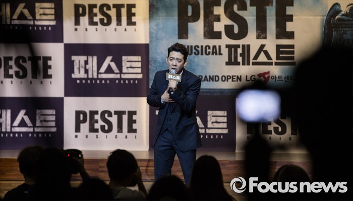 (서울=포커스뉴스) 30일 오후 서울 성동구 디노체 컨벤션에서 열린 뮤지컬 '페스트' 제작발표회 참석한 배우 김도현이 뮤지컬넘버를 시연하고 있다.