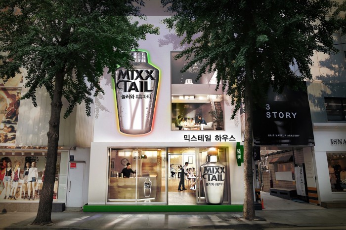두 제품 모두 650ml, 275ml 용량의 병 제품으로 출시되며 대형마트와 편의점 등에서 만나 볼 수 있다.가로수길에 문을 연 '믹스테일' 팝업스토어 '믹스테일 하우스' 전경.<사진제공=오비맥주>