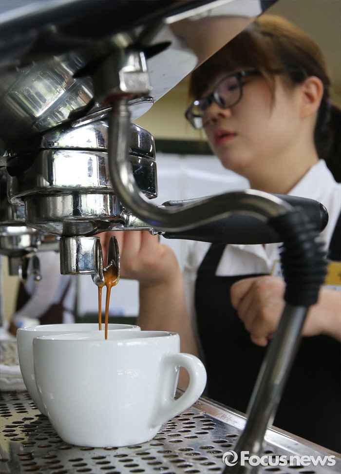 (청주=포커스뉴스) 30일 오후 충북 청주시 서원구 산남동 청주커피교육원에서 열린 충북 장애인기능경기대회 바리스타 종목 참가자가 과제를 수행하고 있다.