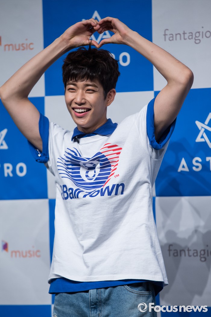 (서울=포커스뉴스) 30일 오후 서울 강남구 일지아트홀에서 열린 아이돌 그룹 아스트로의 두번째 미니앨범 'Summer Vibes' 발표 쇼케이스에 참여한 멤버 MJ가 포토타임을 갖고 있다.