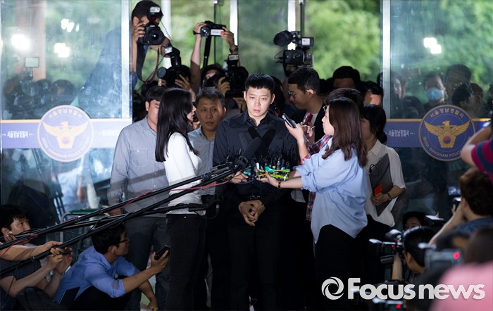 (서울=포커스뉴스) 성폭행 혐의로 4명의 여성에게 연이어 피소된 가수 겸 배우 박유천이 30일 오후 서울 강남경찰서로 출석하고 있다.