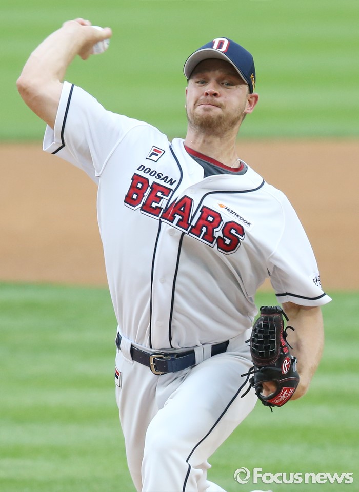 (서울=포커스뉴스) 30일 서울 잠실구장에서 열린 2016 프로야구 NC-두산 경기에서 1회초 두산 선발투수 보우덴이 투구하고 있다.