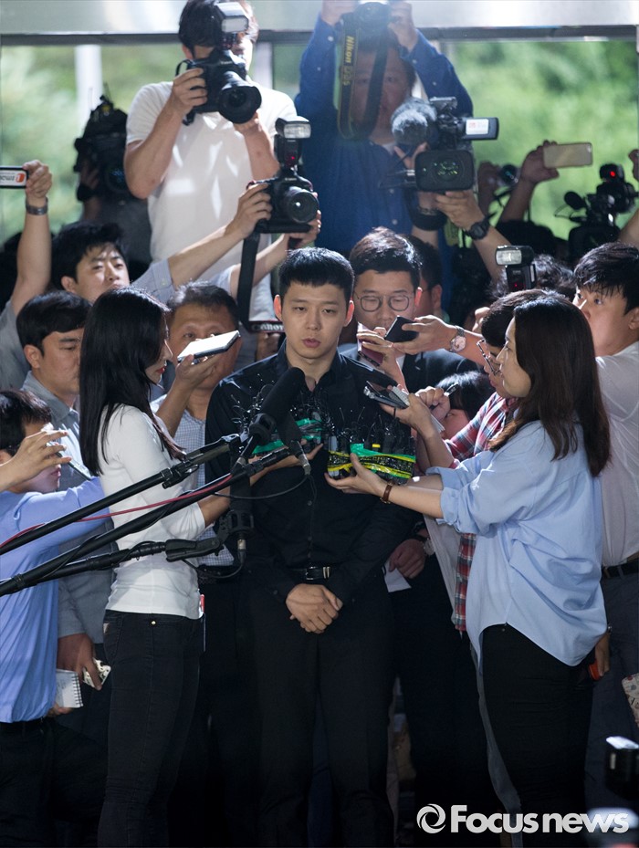 (서울=포커스뉴스) 성폭행 혐의로 4명의 여성에게 연이어 피소된 가수 겸 배우 박유천이 30일 오후 서울 강남경찰서로 출석하고 있다.