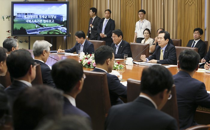 | △ 정세균 국회의장, 첫 공식 업무보고 받아 |