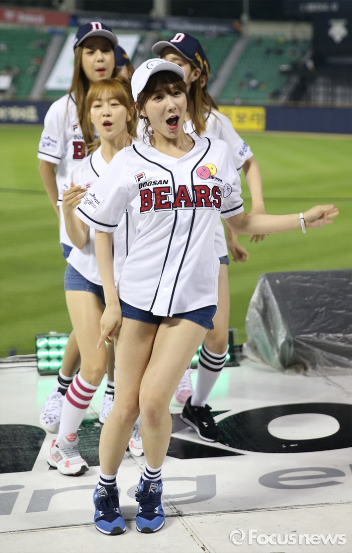 (서울=포커스뉴스) 30일 서울 잠실구장에서 열린 2016 프로야구 NC-두산 경기에서 인기 걸그룹 '라붐'이 경기전 시구에 이어 클리닝타임에 응원단상에 올라 귀엽고 깜찍한 율동으로 관중들에게 한 여름의 더위를 식혀주는 깜짝 공연을 펼쳤다.
