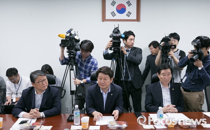 (서울=포커스뉴스) 1일 오전 서울 여의도 국회 의원회관에서 영남권 신공항 백지화 및 대구 공군비행장 이전과 존치문제 등 논의를 위해 열린 새누리당 대구지역 의원들과의 간담회에 참석한 권영진(가운데) 대구시장과 의원들이 대화하고 있다.
