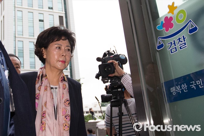 (서울=포커스뉴스) 신영자(74) 롯데장학재단 이사장이 검찰 조사를 받기 위해 1일 오전 서울 서초구 서울중앙지검으로 들어서고 있다. 신 이사장은 롯데면세점 입점 특혜 제공 대가로 20억원 가량을 제공받은 혐의를 받고 있다.