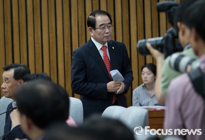 (서울=포커스뉴스) 박명재 새누리당 사무총장이 1일 오전 서울 여의도 국회에서 열린 원내대책회의 중 자리를 나서고 있다.