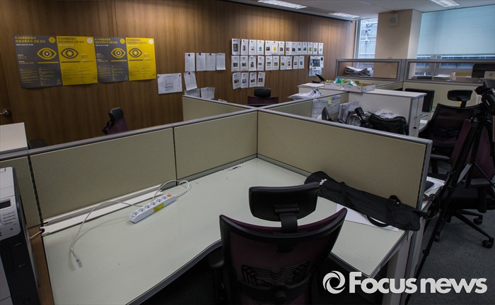 (서울=포커스뉴스) 4.16세월호참사 특별조사위원회의 법정 조사활동이 끝난 1일 오전 서울 중구 특조위 사무실의 책상 곳곳이 파견 직원들의 근무 종료로 텅 비어 있다.