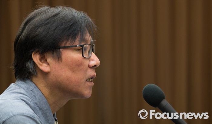 (서울=포커스뉴스) 이동열 투씨엠 대표가 1일 오전 서울 중구 프레스센터에서 열린 제2롯데월드 입면 표절의혹 기자회견에 참석해 발언하고 있다. 이 대표는 자사 디자인 '스타 컬렉션'을 45도 회전하면 제2롯데월드 에비뉴엘관의 디자인과 일치한다고 주장했다.