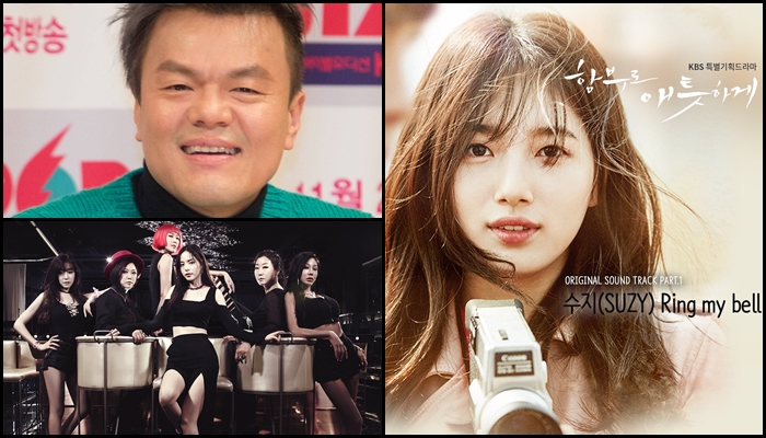 한편 수지는 30일 오후 인스타그램을 통해 “ ‘함부로 애틋하게’ OST 선 공개 하지롱. 몇 시간 뒤에. 오는 12시에. ‘링 마이 벨(Ring my bell)’ ”이라고 음원 공개를 셀프 홍보했다.박진영이 기획한 프로젝트 그룹 언니쓰 '셧업(Shut Up)'이 1일 자정 8대 음원차트를 올킬하는 쾌거를 거뒀다. 사진은 박진영-수지 드라마 OST재킷-언니쓰 앨범재킷(왼쪽 위부터 시계방향) 포커스뉴스DB <사진출처=함부로애틋하게 OST 제작사,KBS>