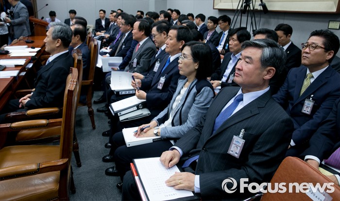 (서울=포커스뉴스) 1일 오전 서울 여의도 국회에서 열린 운영위원회 전체회의에 참석한 이원종 대통령비서실장, 김관진 국가안보실장 등 청와대 관계자들이 자리하고 있다.