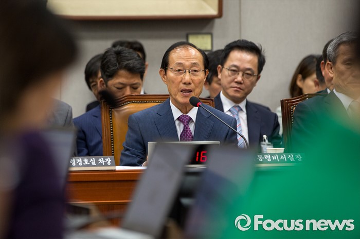 (서울=포커스뉴스) 이원종 대통령비서실장이 1일 오전 서울 여의도 국회에서 열린 '운영위원회 전체회의'에 참석해 질의응답 하고 있다.