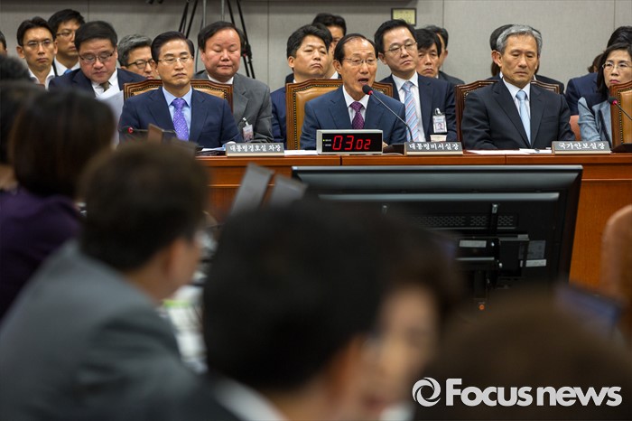 (서울=포커스뉴스) 이원종 대통령비서실장이 1일 오전 서울 여의도 국회에서 열린 '운영위원회 전체회의'에 참석해 질의응답 하고 있다.