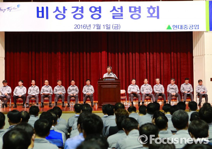 (서울=포커스뉴스) 현대중공업은 창사 이래 처음으로 전 임직원을 대상으로 하는 ‘비상경영설명회’를 지난 1일 개최했다고 밝혔다.