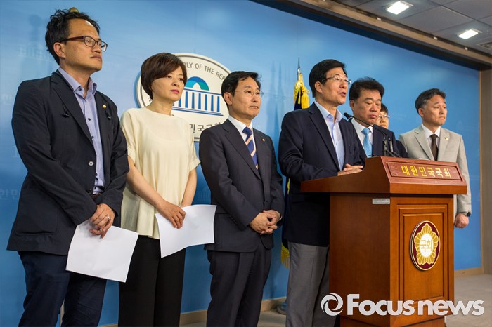 (서울=포커스뉴스) 1일 오후 서울 여의도 국회에서 더불어민주당 공정언론 특위 민주주의회복TF 소속 의원 및 국회 미래창조과학방송통신위원회 소속 의원들이 이정현 새누리당 의원의 청와대 홍보수석 재임시 KBS 보도 개입과 관련해 브리핑 하고 있다.
