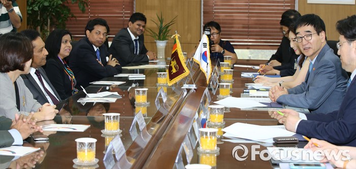 (세종=포커스뉴스) 이준식 사회부총리 겸 교육부장관이 1일 오후 세종시 정부세종청사 교육부 접견실에서 라지따 세나라트너(Rajitha Senaratne) 스리랑카 보건부 장관과 양국의 보건의료분야 교육협력방안을 논의하고 있다.