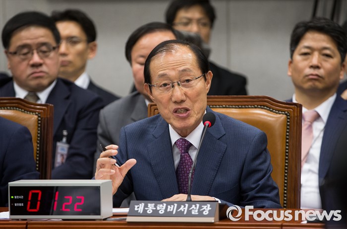 (서울=포커스뉴스) 이원종 대통령 비서실장이 1일 오후 국회에서 열린 운영위원회 전체회의에 참석해 의원들의 질의에 답하고 있다.