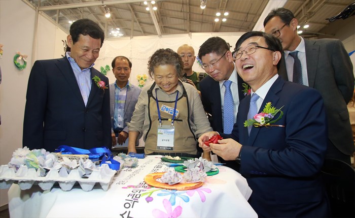 (서울=포커스뉴스) 이기권 고용노동부 장관이 1일 광주 김대중컨벤션센터에서 열린「2016 사회적기업 주간행사 및 사회적경제 박람회에 참석, 참여기업 부스를 둘러보고 있다. <사진제공=고용노동부>