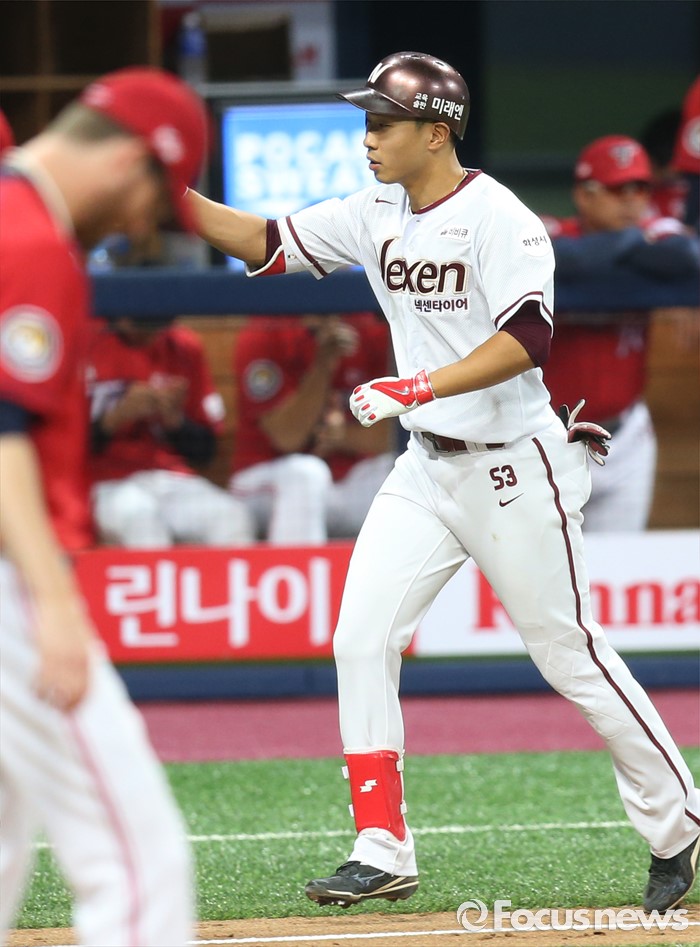 (서울=포커스뉴스) 1일 서울 고척 스카이돔에서 열린 2016 프로야구 KIA-넥센 경기 4회말 무사 2루에서 넥센 고종욱이 우월 2점 홈런을 치고 3루를 돌아 홈인하고 있다.