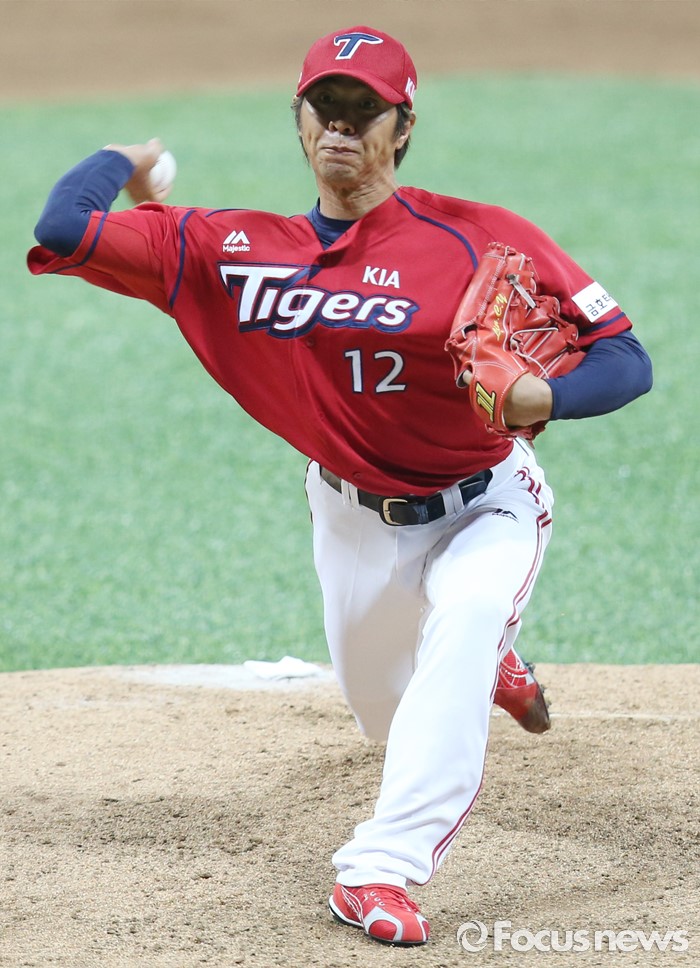 (서울=포커스뉴스) 1일 서울 고척 스카이돔에서 열린 2016 프로야구 KIA-넥센 경기 4회말 2사 1루에서 KIA 임창용이 도박 파문으로 인한 리그 50% 출장정지를 끝내고 등판해 넥센 김민성을 상대로 투구하고 있다.