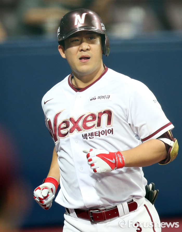 (서울=포커스뉴스) 1일 서울 고척 스카이돔에서 열린 2016 프로야구 KIA-넥센 경기 6회말 2사후 넥센 김민성이 좌월 솔로 홈런을 치고 홈인하고 있다.