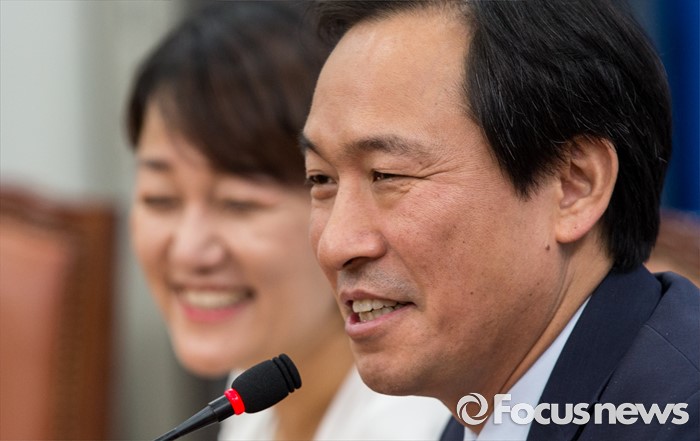 (서울=포커스뉴스) 우상호 더불어민주당 원내대표가 취임 2개월을 맞아 3일 오전 서울 여의도 국회에서 가진 기자간담회에 참석해 인사말을 하고 있다.