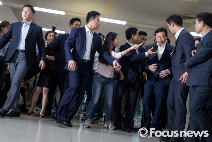 (서울=포커스뉴스) 신동빈 롯데그룹 회장이 3일 오후 서울김포공항을 통해 귀국, 취재진의 질문에 답하고 있다. 신 회장은 이날 기자들에게 최근 롯데그룹을 둘러싼 일련의 사태에 대해 "죄송하다"고 공식 사과 했다.