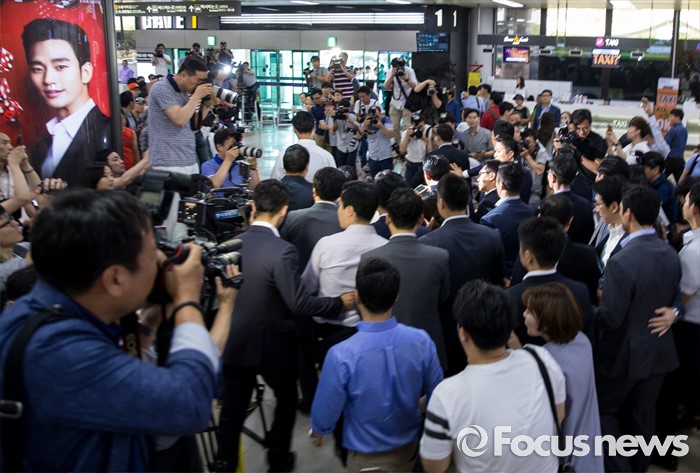(서울=포커스뉴스) 신동빈 롯데그룹 회장이 3일 오후 서울김포공항을 통해 귀국, 취재진의 질문에 답하고 있다. 신 회장은 이날 기자들에게 최근 롯데그룹을 둘러싼 일련의 사태에 대해 "죄송하다"고 공식 사과 했다.