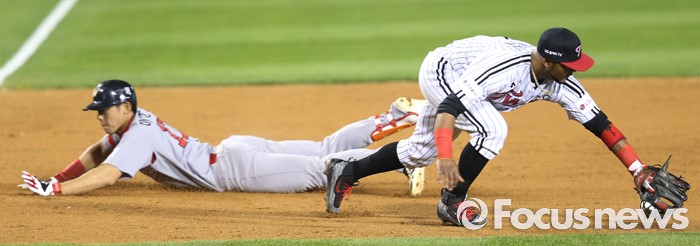 (서울=포커스뉴스) 3일 서울 잠실구장에서 열린 2016 프로야구 SK-LG 경기 8회초 2사후 SK 이명기가 좌중간 3루타를 치고 3루에서 슬라이딩하고 있다.