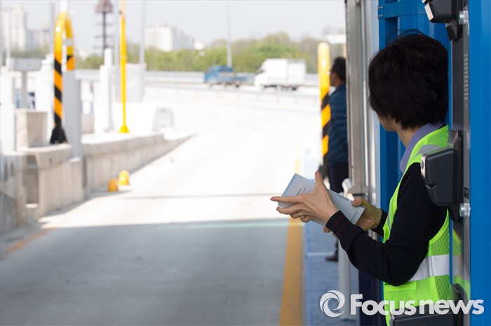 | △ 수원~광명 고속도로 개통, 손님을 기다리는 직원 |