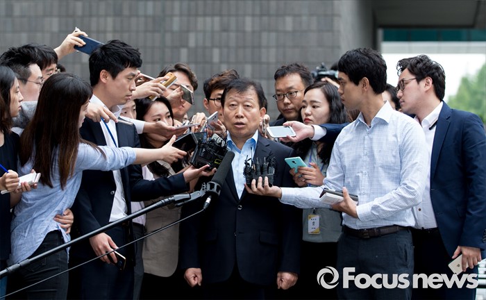 | △ 취재진 질문 답하는 고재호 전 사장 |