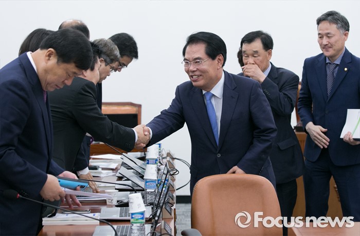 (서울=포커스뉴스) 4일 오전 서울 여의도 국회에서 윤리특별위원회 전체회의를 마친 뒤 백재현(오른쪽 세번째) 위원장과 의원들이 인사하고 있다.