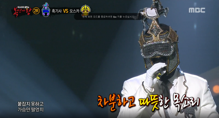 가왕에 오른 '로맨틱 흑기사'는 "정말 감사드린다. 처음부터 다시 도전한다는 마음으로 노력하겠다"는 소감을 전했다.