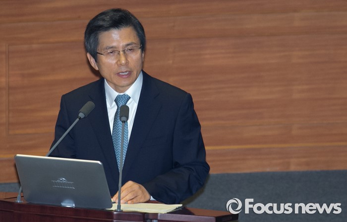 (서울=포커스뉴스) 4일 오전 서울 여의도 국회에서 열린 343회 국회(임시회) 6차 본회의, 경제에 관한 대정부 질문에 참석한 황교안 국무총리가 이종구 새누리당 의원의 질문에 답하고 있다.