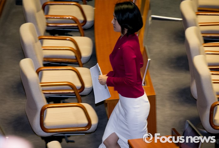 (서울=포커스뉴스) 4일 오전 서울 여의도 국회에서 열린 343회 국회(임시회) 6차 본회의, 경제에 관한 대정부 질문에 참석한 김수민 국민의당 의원이 회의가 정회된 후 퇴장하고 있다.