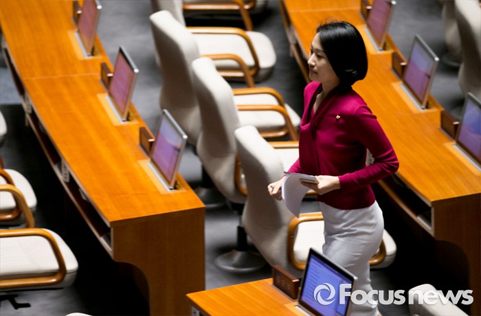 (서울=포커스뉴스) 4일 오전 서울 여의도 국회에서 열린 343회 국회(임시회) 6차 본회의, 경제에 관한 대정부 질문에 참석한 김수민 국민의당 의원이 회의가 정회된 후 퇴장하고 있다.