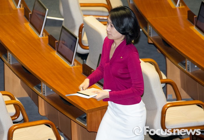 (서울=포커스뉴스) 4일 오전 서울 여의도 국회에서 열린 343회 국회(임시회) 6차 본회의, 경제에 관한 대정부 질문에 참석한 김수민 국민의당 의원이 회의가 정회된 후 퇴장하고 있다.