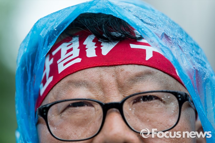 (서울=포커스뉴스) 4일 오후 서울중앙지방법원 앞에서 전국민주노동조합총연맹이 한상균 위원장 석방 판결 촉구 결의대회를 하고 있다.