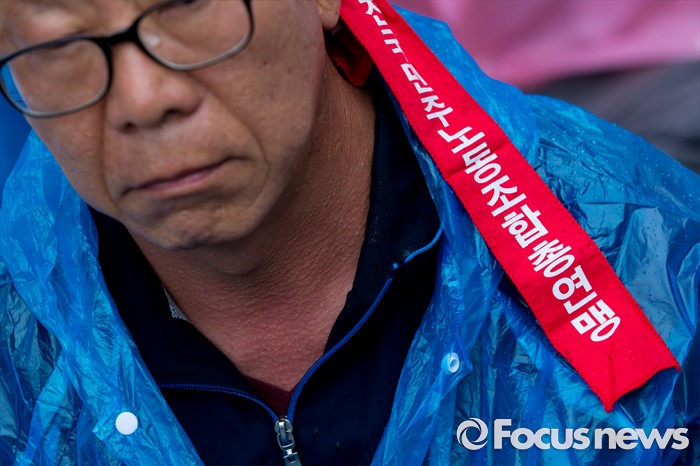 (서울=포커스뉴스) 4일 오후 서울중앙지방법원 앞에서 전국민주노동조합총연맹이 한상균 위원장 석방 판결 촉구 결의대회를 하고 있다.