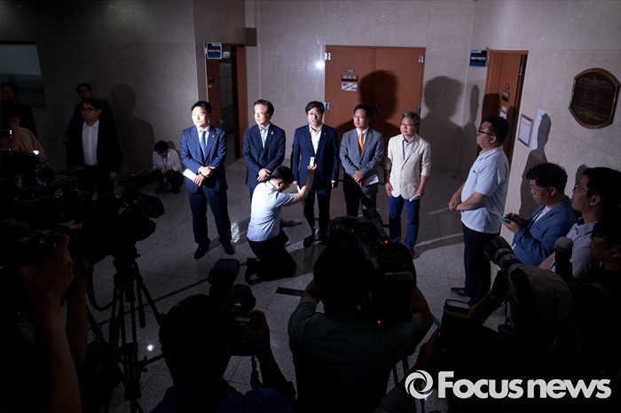 | △ 취재진 질문에 답하는 경기도 지역 시장 |